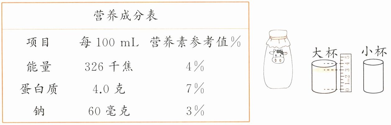 (2)这瓶牛奶倒满4个大杯后,剩下的还够倒满1个小杯吗?(5分)