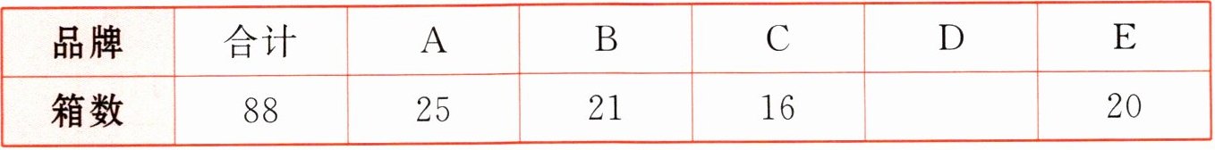 (2)答:我认为王叔叔换掉D品牌比较合适。因为五个品牌中D品牌的销量最少。(叙述合理即可)
