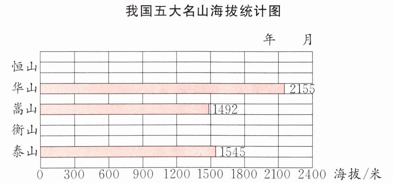 2 我国的“五岳”是中华传统文化中五大名山的总称,分别是东岳泰山、西岳华山、中岳嵩山、南岳衡山和北岳恒山。下面是我国五大名山海拔统计图。(海拔取整数)