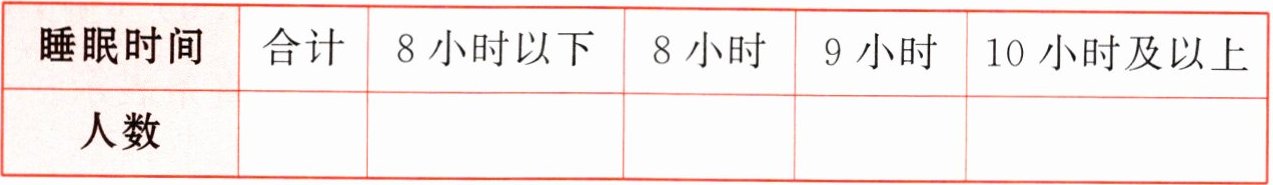 |睡眠时间|合计|8小时以下|8小时|9小时|10小时及以上|