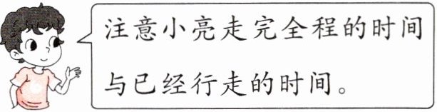 小亮走完全程要30分钟,他已经走了10分钟,那么剩下的路程他(30 - 10)分钟就可以走完,而这一段路程就是小红10分钟行走的路程再加上100米。所以小亮每分钟走600÷(30 - 10)=30(米)。