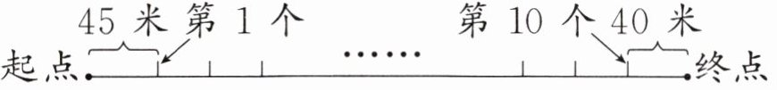8 400米的跑道上放着10个栏架,栏架间的距离相等,如下图所示。相邻两个栏架相距多少米?