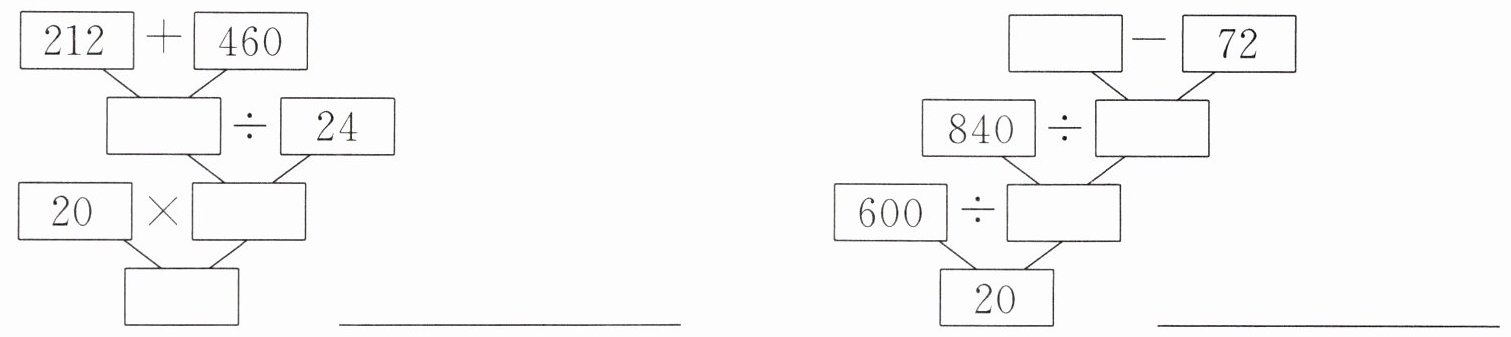 672 28 560 20×[(212+460)÷24]=560 100 28 30 600÷[840÷(100-72)]=20