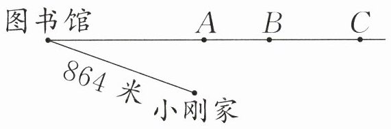 3. 小亮每分钟走68米,小刚每分钟走72米。从家到图书馆,小亮比小刚多走了6分钟,小亮家可能在点A、B、C哪一处? (6分)