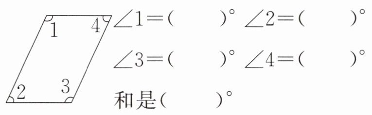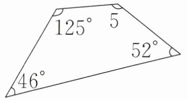 解析 用量角器分别量角,可以量出第一个四边形中四个角的度数分别是115°、65°、115°、65°,和是360°;第二个四边形中四个角的度数分别是90°、90°、125°、55°,和是360°。可以发现,四边形中四个角的度数和是360°。利用这个发现,可以算出题图中的∠5=360°-46°-125°-52°=137°。