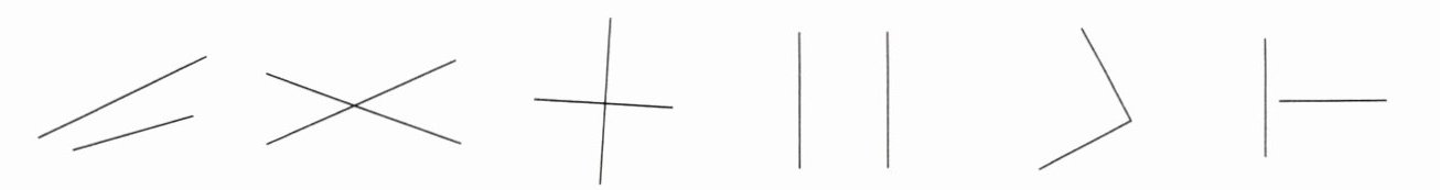 1 下面几组直线中,哪些互相垂直? 在括号里画“√”。