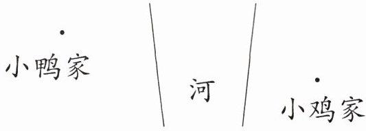 5 小鸭在岸上走路比较吃力,但是擅长游泳,它想到小鸡家玩,怎样走最省力?画一画。