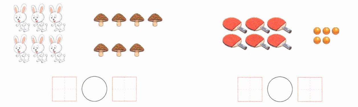 1. 看图写数,并比较大小。