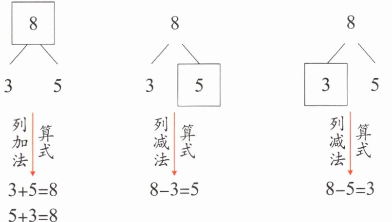 $3 + 5 = 8$,$5 + 3 = 8$,$8 - 3 = 5$,$8 - 5 = 3$;