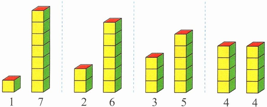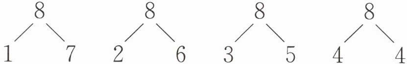 根据上面分的情况可知,8可以分成1和7,2和6,3和5,4和4。