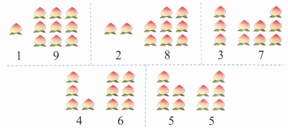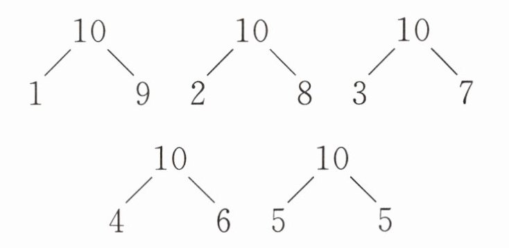 根据上面分的情况可知,10可以分成1和9,2和8,3和7,4和6,5和5。