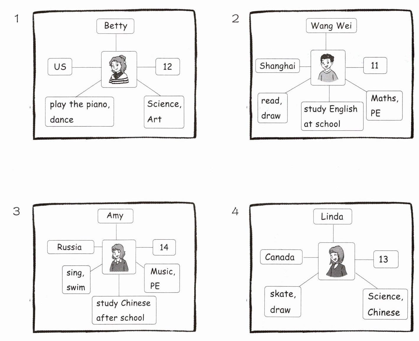 4.My e-friend is Linda. She lives in Canada.She is 13 years old. She likes Science and Chinese very much. She can speak Chinese. She likes skating and drawing.