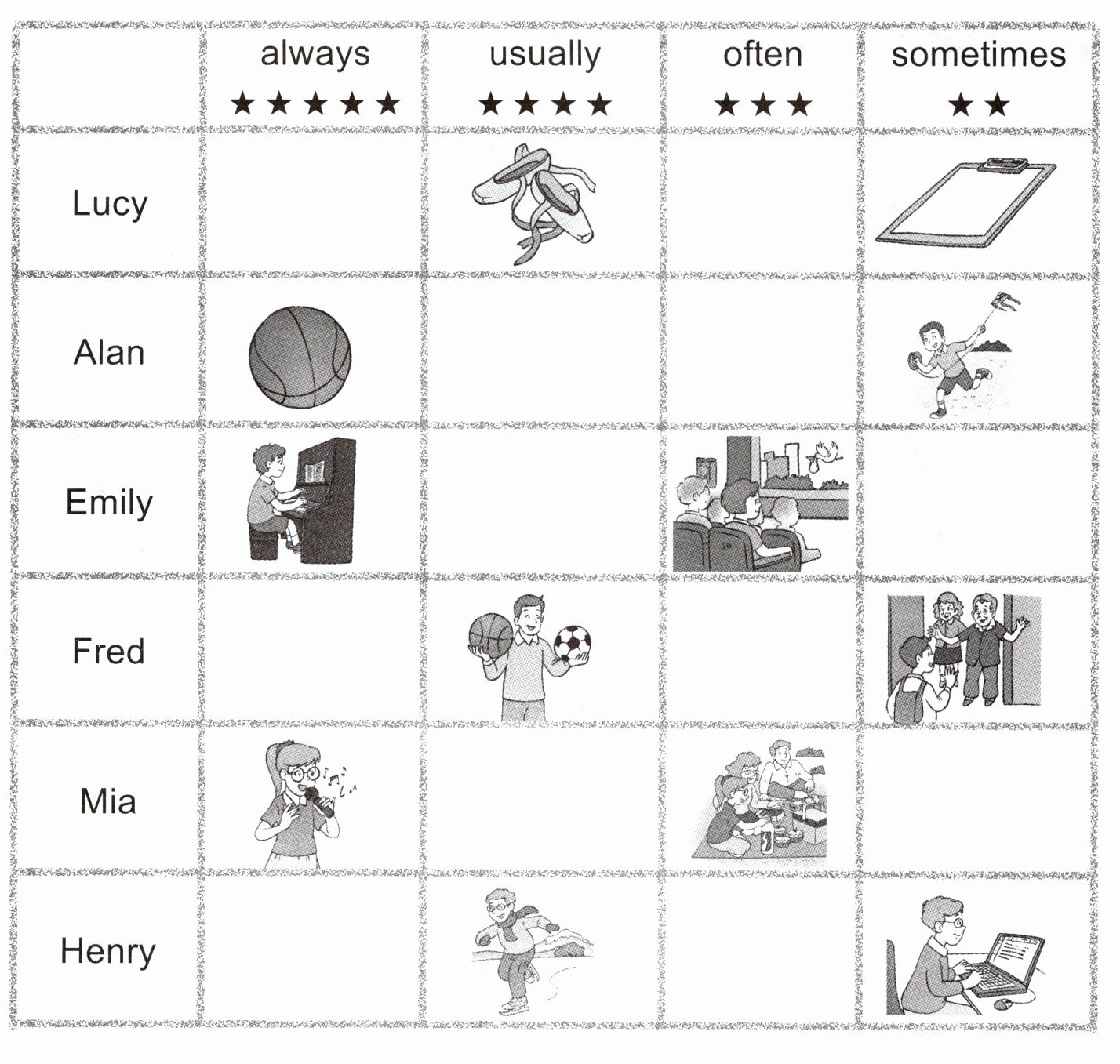 3. Fred usually plays basketball and football at weekends. Sometimes, he visits his grandparents.