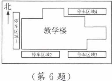 6. 如图所示,学校的四层教学楼周围有四个露天停车区域。夏日的午后,为了防止自行车被暴晒,自行车停放的最佳位置是( )。