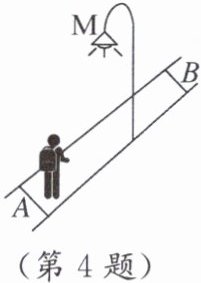 4. 如图所示,夜晚小明沿着人行道行走。从A处经过路灯M走到B处的过程中,他在路灯M照射下形成的影子长度的变化情况是( )。