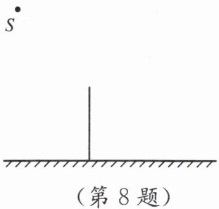 8. 如图所示,S为点光源。请在图中画出直杆在地面上形成的影子并用AB表示。请用光的直线传播知识来解释影子的形成。