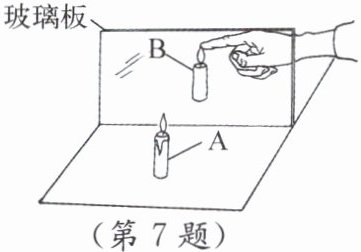 7. 如图所示是探究平面镜成像特点的情景。A和B是两支完全相同的蜡烛。下列说法中不正确的是( )。