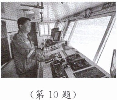 10. 如图所示,轮船驾驶员通过驾驶台上的透明玻璃观察前方航道的情况。此处的玻璃不是竖直的,而是向前倾斜的。请从光学角度分析这样设计的目的:____。
