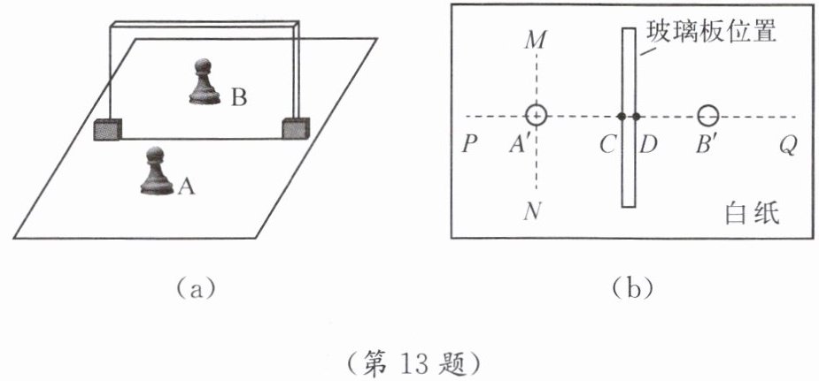 13. 在“探究平面镜成像的特点”实验中,装置如图(a)所示。