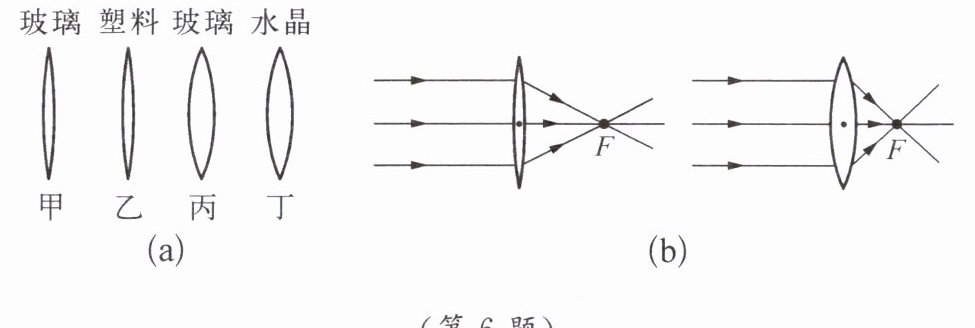6. 某物理兴趣小组选择如图(a)所示的四个透镜进行探究实验(其中甲和乙、丙和丁是两组形状相同的凸透镜)。