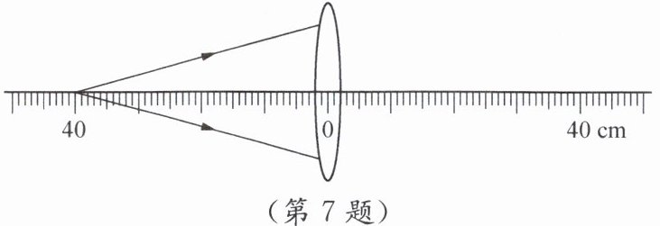 7. 在“探究凸透镜成像的规律”实验中,当把物体放在距凸透镜 40 cm 处时,在另一侧距凸透镜 40 cm 处得到一个倒立、等大的实像。下列说法中正确的是( )。