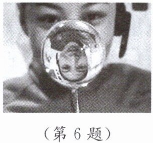 6. 如图所示是航天员王亚平进行太空授课时的情景。图中的水球相当于凸透镜,假设水球的焦距为 f,则此时王亚平到水球的距离 u 应该是( )。