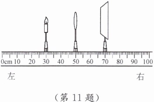 11. 在“探究凸透镜成像的规律”实验中,凸透镜焦距为 10 cm,蜡烛、凸透镜和光屏的位置如图所示。