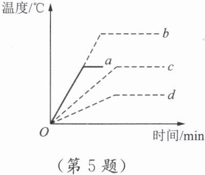 5. 给一定质量的水加热,其温度—时间关系如图中曲线a所示。若其他条件不变,仅增加水的质量,则此时的温度—时间图像应是( )。