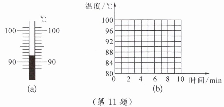 11. 在“探究水在沸腾前后温度变化的特点”实验中,当水温升到88℃后,每隔1min读一次温度计的示数,直到水沸腾3min后停止读数,测得的实验数据如下表所示。