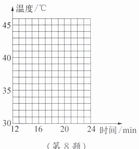 8. 某同学做硝酸锌的熔化和凝固实验,加热12min时停止加热,让其冷却,下表是他记录的冷却过程中的实验数据。