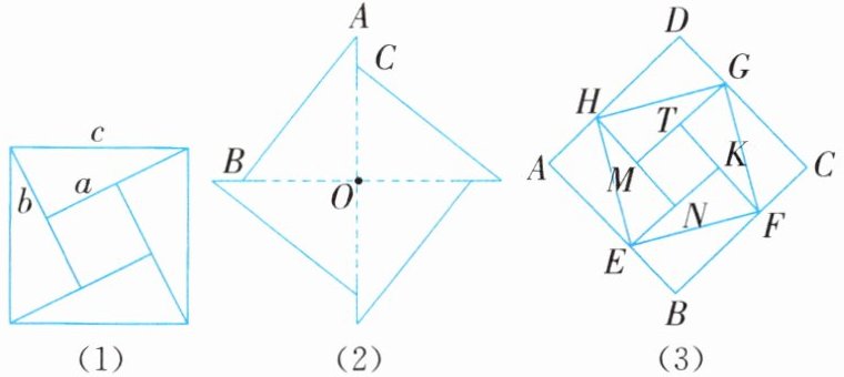 (3)如图(3),将八个全等的直角三角形紧密地拼接,记图中正方形ABCD、正方形EFGH、正方形MNKT的面积分别为$S_1,S_2,S_3$,若$S_1 + S_2 + S_3 = 16$,求$S_2$的值.