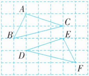 如图,每个小正方形的边长均为1,$\because BC=\sqrt{4^{2}+1^{2}}=\sqrt{17}$,$DF=\sqrt{4^{2}+1^{2}}=\sqrt{17}$,$\therefore BC=DF$.同理可得 $DE=AC=\sqrt{10}$,$EF=AB=\sqrt{5}$.在$\triangle ABC$和$\triangle EFD$中,$\begin{cases} AB=EF, \\ BC=FD, \\ AC=ED, \end{cases}$$\therefore \triangle ABC\cong\triangle EFD(SSS)$,$\therefore \angle ABC=\angle DFE$.