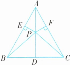 名师启发 (1)首先根据等腰三角形的顶角平分线与底边上的中线相互重合,得出AD平分∠BAC,然后根据角平分线上的点到角的两边的距离相等,即可证出PE= PF;