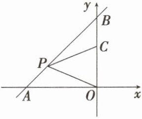 16. 如图,一次函数y = x + 4与坐标轴分别交于A,B两点,点P,C分别是线段AB,OB上的点,且∠OPC = 45°,PC = PO,则点P的坐标是______。