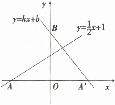 17. 如图,直线y = $\frac{1}{2}$x + 1与x轴交于点A,点A关于y轴的对称点为A',设经过点A'和y轴上的点B(0,2)的直线为y = kx + b。
