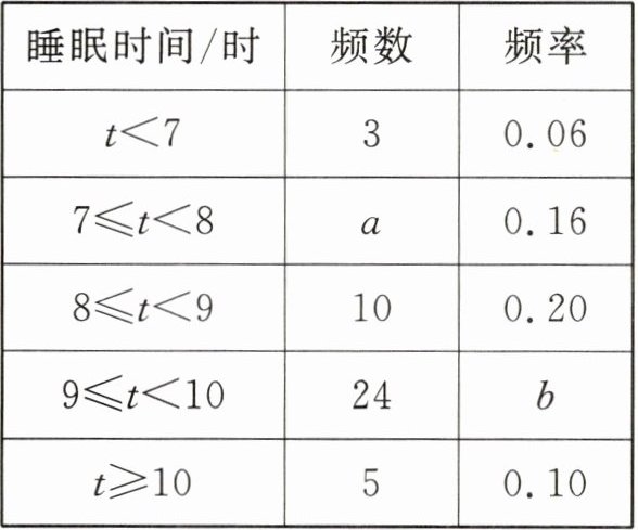 (1)本次抽取的学生有:$3÷ 0.06=50$(人).$a=50× 0.16=8$,$b=24÷ 50=0.48$.故答案为:8,0.48.
