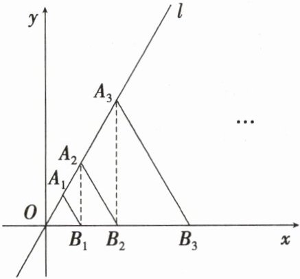 18. 如图,在第一象限内的直线$l:y= \sqrt {3}x上取点A_{1}$,使$OA_{1}= 1$,以$OA_{1}为边作等边三角形OA_{1}B_{1}$,交$x轴于点B_{1}$;过点$B_{1}作x轴的垂线交直线l于点A_{2}$,以$OA_{2}为边作等边三角形OA_{2}B_{2}$,交$x轴于点B_{2}$;过点$B_{2}作x轴的垂线交直线l于点A_{3}$,以$OA_{3}为边作等边三角形OA_{3}B_{3}$,交$x轴于点B_{3}$……依此类推,则点$A_{2022}$的横坐标为____.