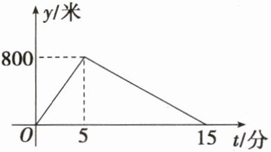 16. 小明从家跑步到学校,接着原路步行回家,如图所示是小明离家的路程$y$(米)与时间$t$(分)的函数图象,则小明回家的速度是每分步行____米.