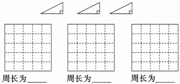 17. 现有三块两直角边长分别为1和2的直角三角形纸板,借助下面5×5的网格,用全部纸板分别拼出3个面积为3且周长不同的四边形,并写出相应四边形的周长.