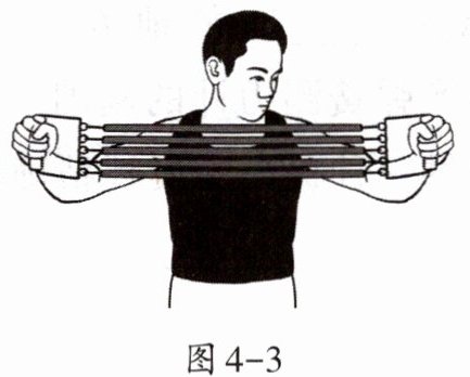6. 如图4-3所示为健身爱好者使用弹簧拉力器锻炼身体的情景。小东的四位同学也都可以将弹簧拉力器拉开至两臂水平伸直。小东的四位同学中两臂水平伸直时对弹簧拉力器的拉力最大的是(