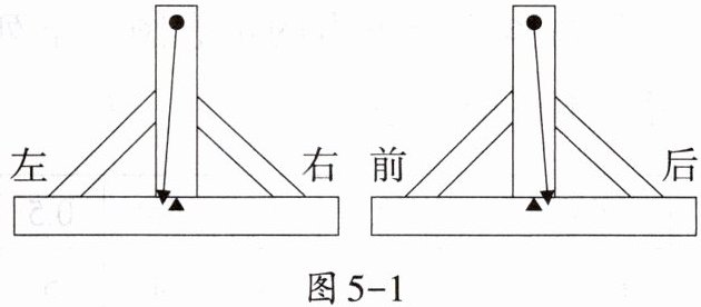 3. 物理实践活动中,小聪利用铅垂线制作了一个水平仪,检验课桌是否水平。当把水平仪两次放置于某桌面上时的情形如图5 - 1所示。关于该桌面的水平情况,下列选项正确的是 (