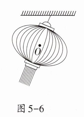 10. 元宵佳节悬挂灯笼是中华民族的一种传统。如图5-6所示,一盏灯笼被风吹向左偏。请在图中画出灯笼所受重力和绳子拉力的示意图。(O点表示灯笼的重心)