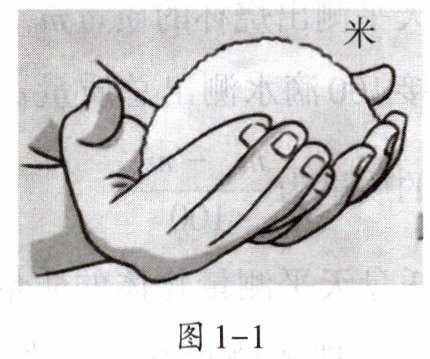 7. “掬手为升”是我国古代的计量方法之一,掬即为双手捧。如图 1-1 所示,双手捧起的米质量约为(