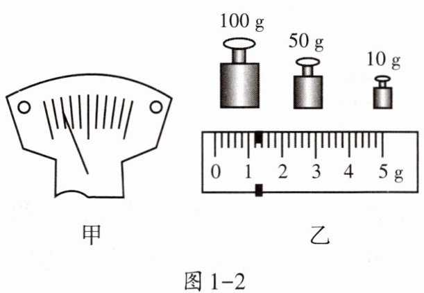 (选填“左”或“右”)调节,直至天平平衡。将盛有水的烧杯放到天平的左盘,向右盘加减砝码,天平平衡时,砝码的质量和游码的位置如图 1-2 乙所示,则烧杯和水的总质量为161.2
