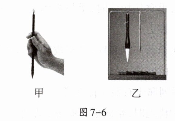 )____N。书写完毕后,将毛笔挂在如图7-6乙所示的笔架上,此时毛笔对笔架的拉力与笔架对毛笔的拉力是一对____(相互作用力