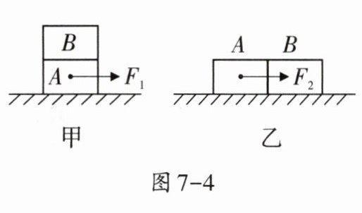 N,若将A、B两物块按图7-4乙所示紧靠放在水平桌面上,用水平力$F_2$推物块A,使它们一起做匀速直线运动,则推力$F_2= 20