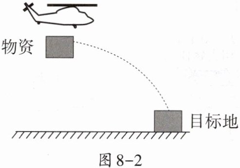4. “一方有难,八方支援”体现了中华民族的传统美德。如图8 - 2所示为一架水平匀速飞行的直升机正在向某地震灾区地面投送物资的场景。关于该直升机投送救灾物资的说法,下列选项正确的是 (