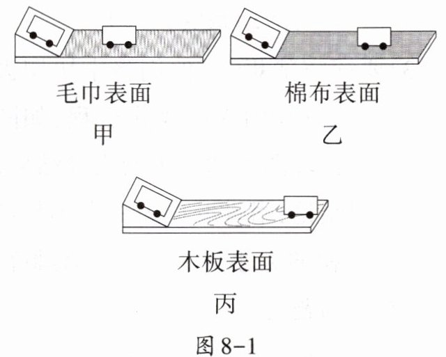 1. 在学习牛顿第一定律的时候,同学们做了如图8 - 1所示的实验。下列有关叙述正确的是 (