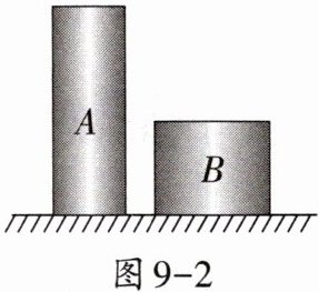 5. 如图9-2所示,同种材料制成的两个实心圆柱体A和B放在水平地面上处于静止状态,它们的高度之比为2:1,底面积之比为1:2。下列选项正确的是 (
