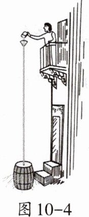 4. 物理学家帕斯卡做了一个著名的实验:他用一个密闭的装满水的木桶,在桶盖上插入一根细长的管子,从楼房的阳台上向细管里灌水,如图10 - 4所示,只用了几杯水,就把桶压裂了,桶里的水从裂缝中流了出来。关于桶底受到水的压强大小,下列估算合理的是(